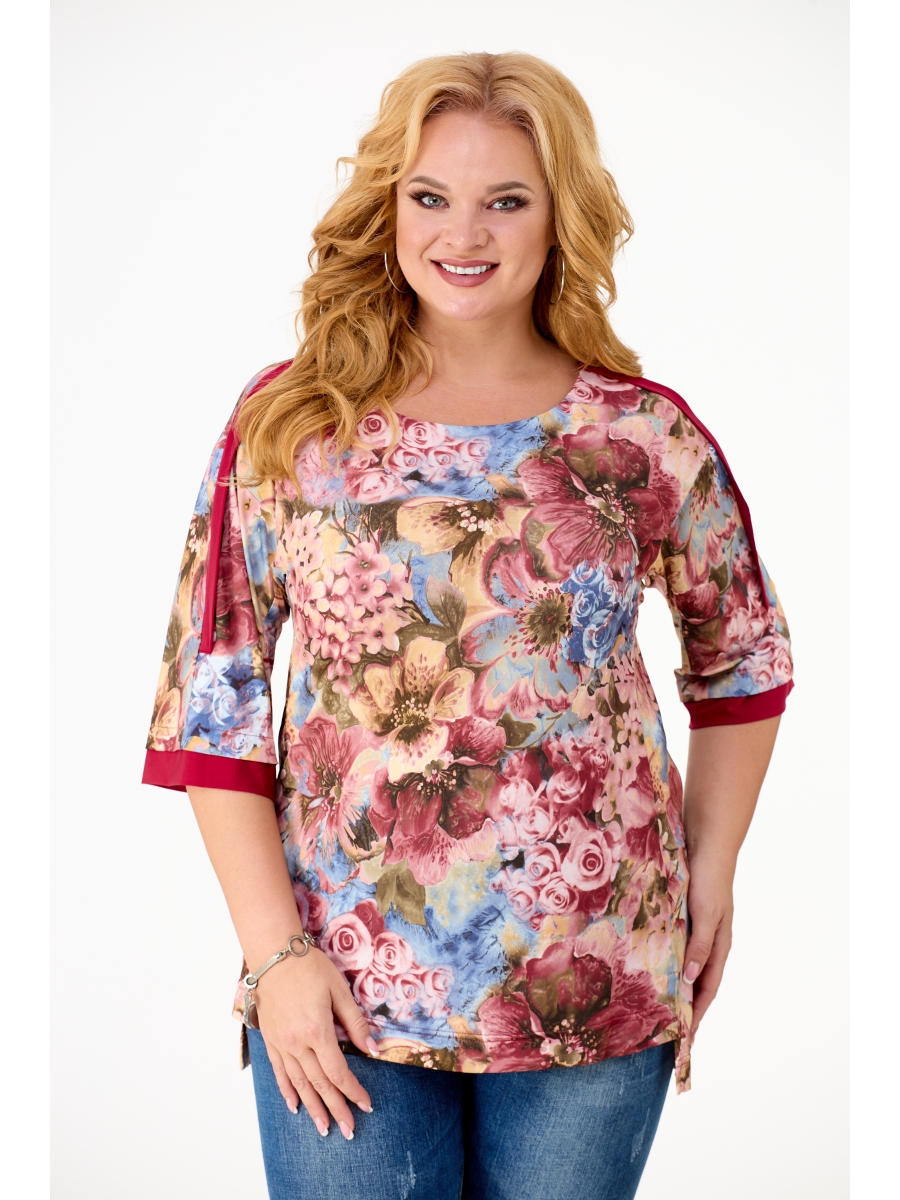 Блузон-туника для каждого дня! Удобная в носке за счёт прямого силуэта и оригинальная, благодаря конструктивным деталям по спущенной линии плеча и боковой вставке! Главной особенностью туники является спинка: под функциональной молнией в рамке из отделочной ткани скрывается шифоновая вставка-веер. Элегантный вырез горловины-лодочка. Ассиметричный низ с разрезами. Блузон представлен в ткани темно-синего цвета с цветочным принтом.