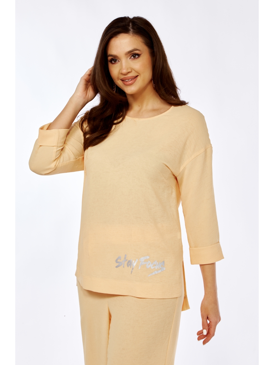 Эта блузка идеально сочетается с брюками нашего бренда с артикулом 2025, выполненными из такой же легкой весенне-летней ткани. Создайте гармоничный образ, который подчеркнет вашу женственность и стиль.