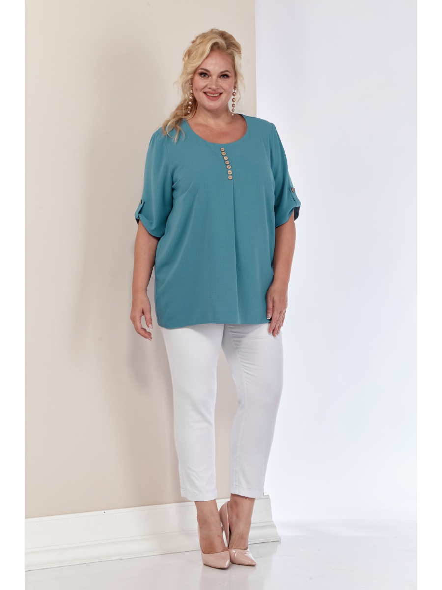 Блуза из мягкой струящейся ткани. Свободный, стильный, удобный и отличный выбор для яркого лета. Блузка прямого силуэта свободной формы с коротким рукавом с патой на пуговице. Перед с нагрудными вытачками. Вырез горловины округой формы. Полочка оформлена поперечной складкой и декоративным элементом в виде имитации застежки на пуговицы. Прекрасный выбор для летнего гардероба в сочетании с брюками, джинсами или шортами.