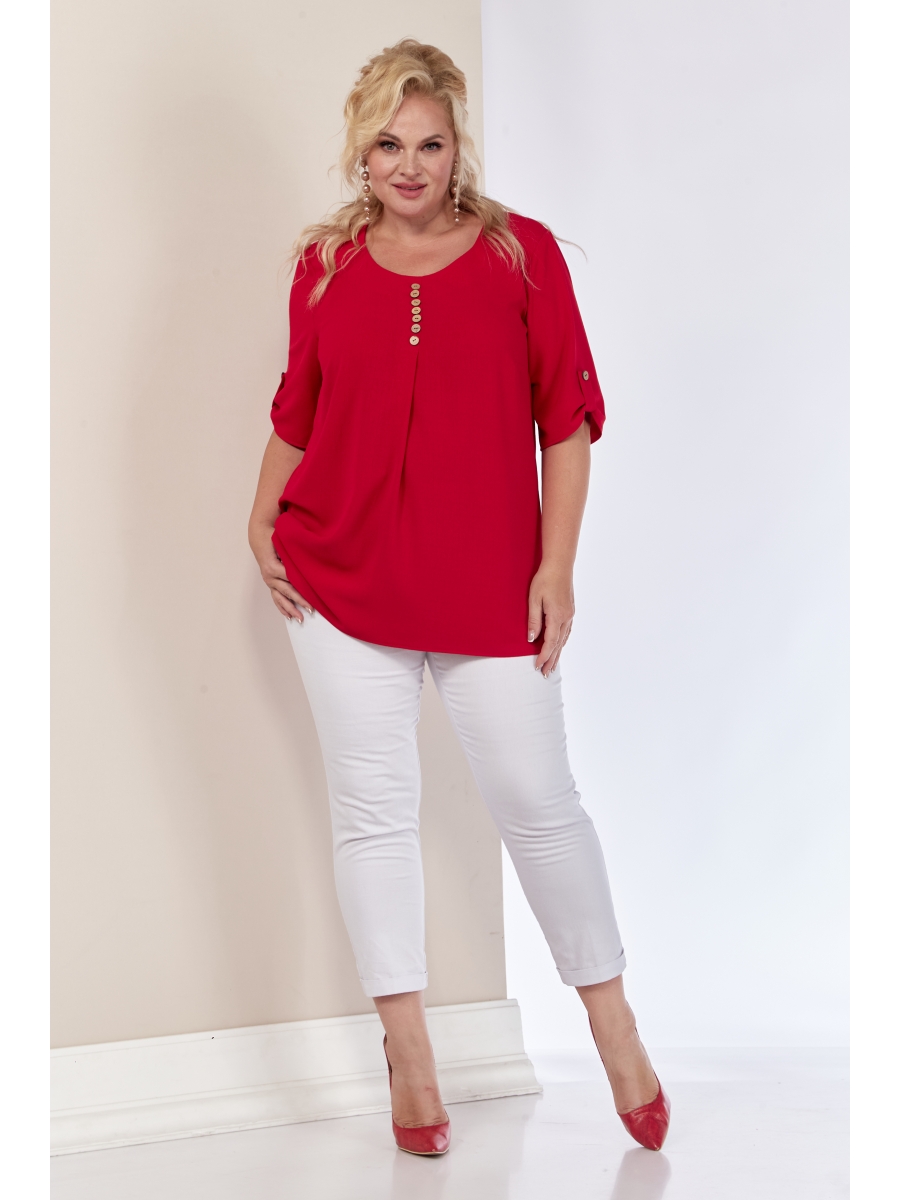 Блуза из мягкой струящейся ткани. Свободный, стильный, удобный и отличный выбор для яркого лета. Блузка прямого силуэта свободной формы с коротким рукавом с патой на пуговице. Перед с нагрудными вытачками. Вырез горловины округой формы. Полочка оформлена поперечной складкой и декоративным элементом в виде имитации застежки на пуговицы. Прекрасный выбор для летнего гардероба в сочетании с брюками, джинсами или шортами.