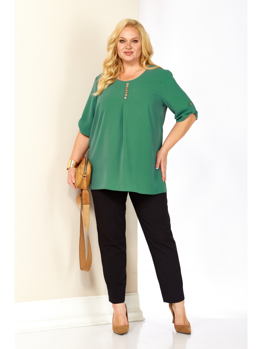 Блуза из мягкой струящейся ткани. Свободный, стильный, удобный и отличный выбор для любого времени года. Блузка прямого силуэта свободной формы с коротким рукавом с патой на пуговицу. Перед с нагрудными вытачками. Вырез горловины округой формы. Полочка оформлена поперечной складкой и декоративным элементом в виде имитации застежки на пуговицы. Прекрасный выбор для любого гардероба в сочетании с брюками или джинсами.