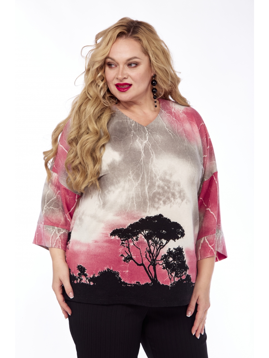 Блузка 4053 розово-черный, Abbi – купить с доставкой в Нижнем Новгороде на nizhny-novgorod.belpodium.ru