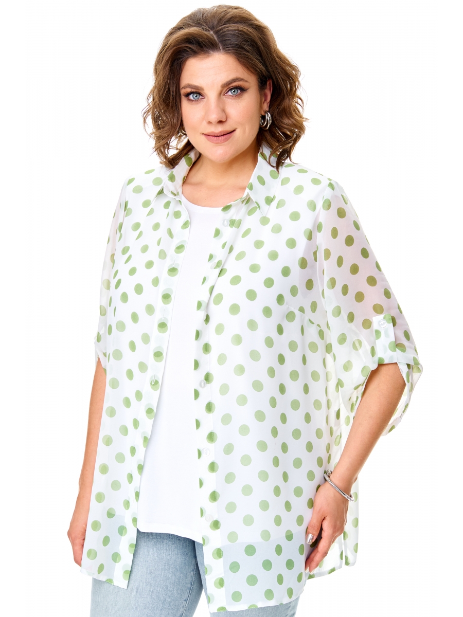 Ткань – легкий воздушный дышащий шифон, просвечивается, с принтом в крупный зеленый горох.