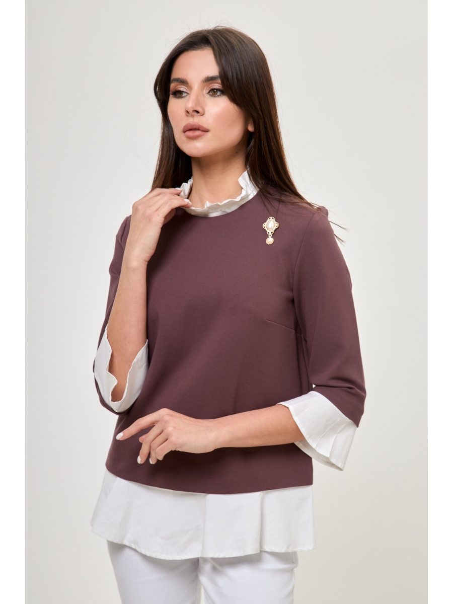 Блузка-трансформер полуприлегающего силуэта со съемными белыми манжетами-накладками. Без подкладки, ткани средней плотности. Отличная альтернатива классической рубашке и незаменимая часть гардероба для придания уникального стиля, комбинирования разных образов за счет съёмных манжет, воротника и имитации рубашечного низа вы легко преобразитесь из классического строгого стиля в сдержанный неформальный образ, который подойдет для отдыха и прогулок.