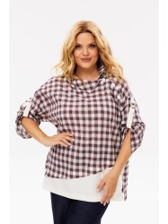 Базовая женская блуза свободного кроя - идеальный вариант как для офиса, так и для прогулок. Изделие выполнено из блузочной ткани. Оригинальный крой блузы, состоящий из двух комбинированных тканей: крупной клетки и однотона. Рубашечный воротник, застегивающийся на пуговицы сбоку. Рукав - ¾, украшен хлястиками на полукольцах. По спинке встречная складка, благодаря которой изделие свободно садится по фигуре. По переду декоративный отлетной карман. Блузка удачно вольется в гардероб и станет незаменимой даже у самой взыскательной хозяйки.