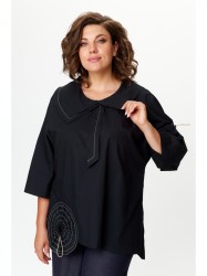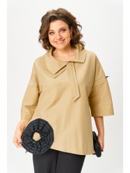 Женская хлопковая блуза в стиле «бохо» прекрасно вольется в повседневную жизнь и станет одной из любимых базовых вещей в Вашем гардеробе. Блуза свободного кроя, вырез горловины круглый с раскладным асимметричным воротником, по спинке скрепленным патой, а по переду с декоративным «галстуком». Рукав втачной 3/4, низ блузы так же с асимметрией и боковыми разрезами. Перед цельный, спинка разрезная с плечевой кокеткой, переходящей в рукав. Левый рукав - с кулиской и декоративной стяжкой. Так же по переду круглый декоративный карман-стяжка. Изделие хорошо сочетается как с брюками, так и с юбками, с классической и спортивной обувью.