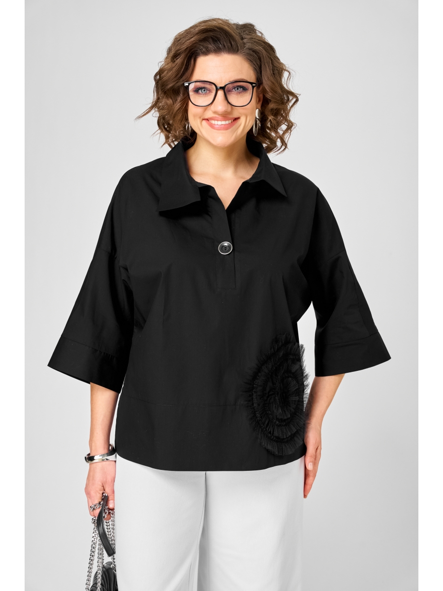 Декорирована блуза настрочным цветком из сетки.