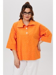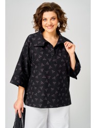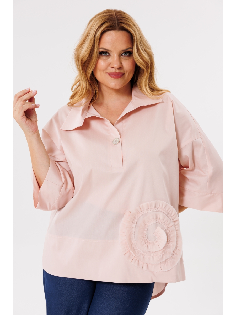 Женская хлопковая блуза в стиле «бохо» прекрасно вольется в повседневную жизнь и станет одной из любимых базовых вещей в Вашем гардеробе. Блуза свободного кроя. Перед цельный с планкой-застежкой до груди. Спинка с плечевой кокеткой, переходящей в рукав. Рукав 3/4 с притачной манжетой по низу. Из-под кокетки спинки - запах из двух нижних деталей блузы, фигурный низ, по бокам изделия разрезы. По низу переда широкая подгибка. Декорирована блуза настрочным цветком из основной ткани.