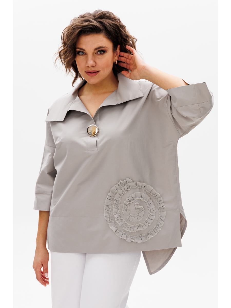 Женская блуза в стиле «бохо» прекрасно вольется в повседневную жизнь и станет одной из любимых базовых вещей в Вашем гардеробе. Блуза свободного кроя. Перед цельный с планкой-застежкой до груди. Спинка с плечевой кокеткой, переходящей в рукав. Рукав 3/4 с притачной манжетой по низу. Из-под кокетки спинки — запах из двух нижних деталей блузы, фигурный низ, по бокам изделия разрезы. По низу переда широкая подгибка. Декорирована блуза настрочным цветком из основной ткани.