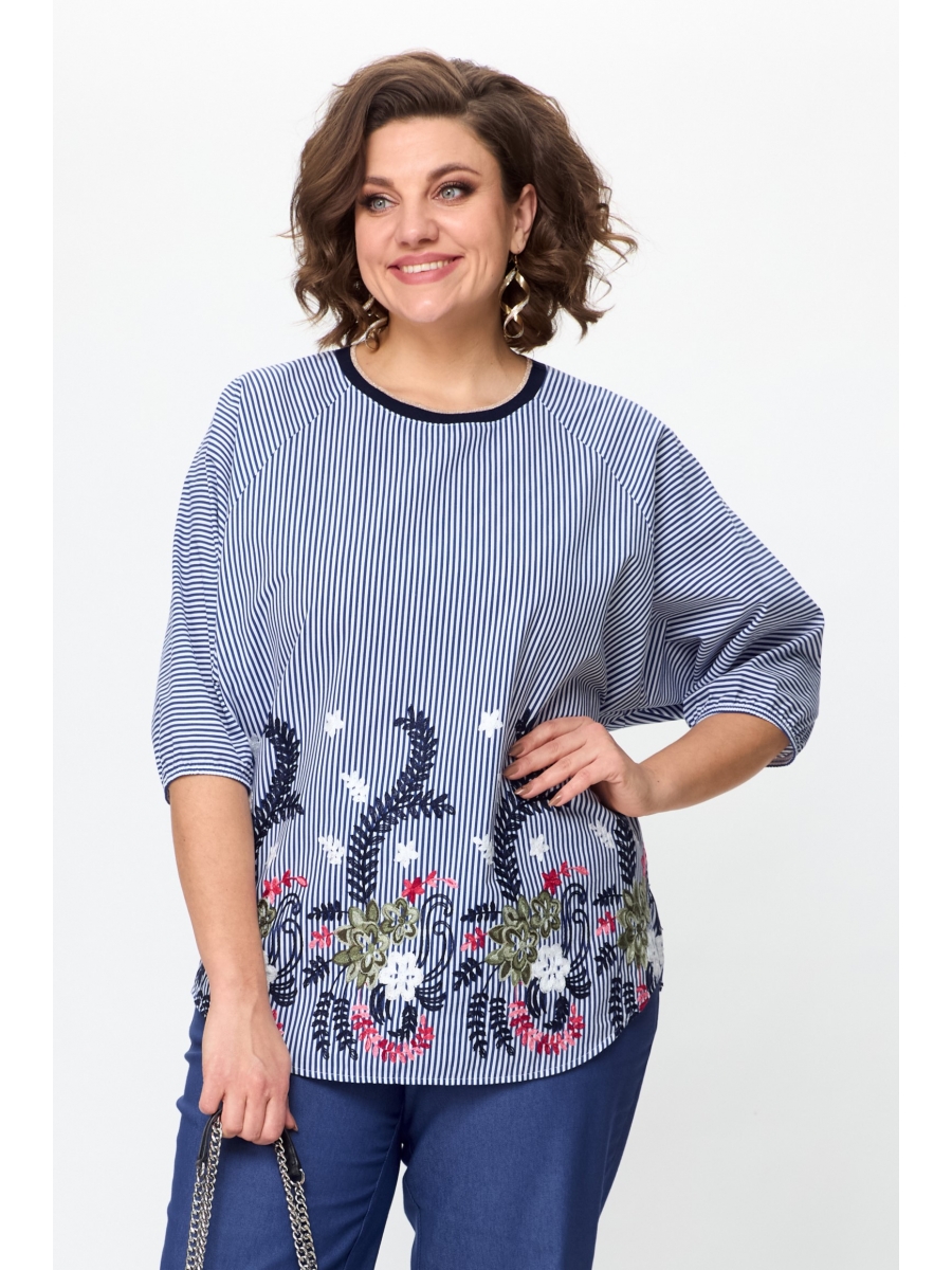 Женская хлопковая блуза с цветочным принтом дополнит любой ваш весенне-летний образ. Блуза выполнена из средней плотности ткани с цветочной вышивкой по низу. Рукав реглан 3/4 по низу собран на резинку, вырез горловины круглый оформлен трикотажной окантовкой. Перед и спинка прямые цельные с фигурным низом и по бокам небольшие разрезы.