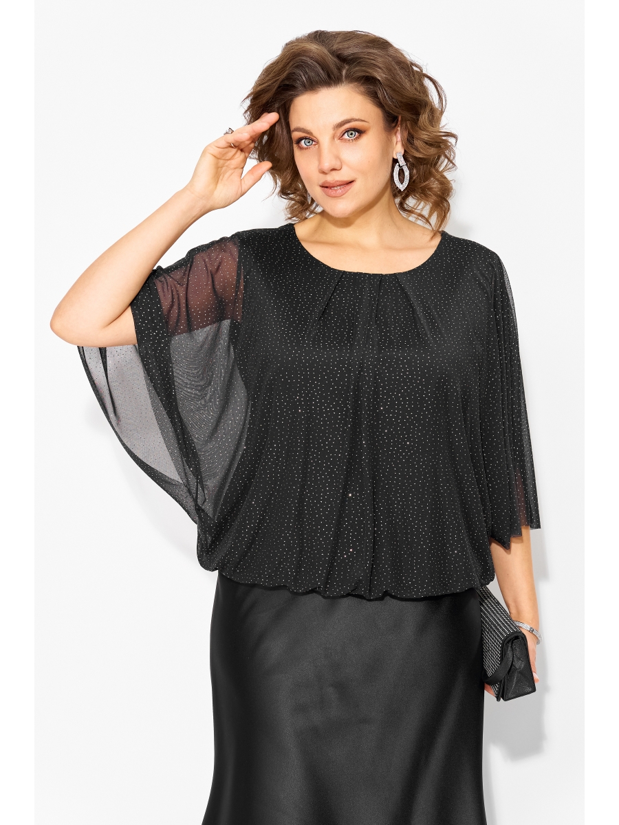 Эта модная женская блуза отличается уникальным стилем бохо и нарядным настроением, а прозрачный рукав с мерцающим эффектом добавляет легкости и особого шарма. Объемный цельнокроеный рукав делают ваш наряд эффектным, женственным и привлекательным. Округлый вырез горловины по полочке заложен в мягкие складки. Низ присборен и оформлен мягкой трикотажной притачной планкой. Подкладка выполнена из мягкого трикотажа, садится точно по фигуре. Изюминкой данной модели служит эффектный вырез на спине с декоративной резинкой с мерцающим эффектом. Выбирая эту блузку, вы выбираете стиль, универсальность и возможность всегда быть в центре внимания.