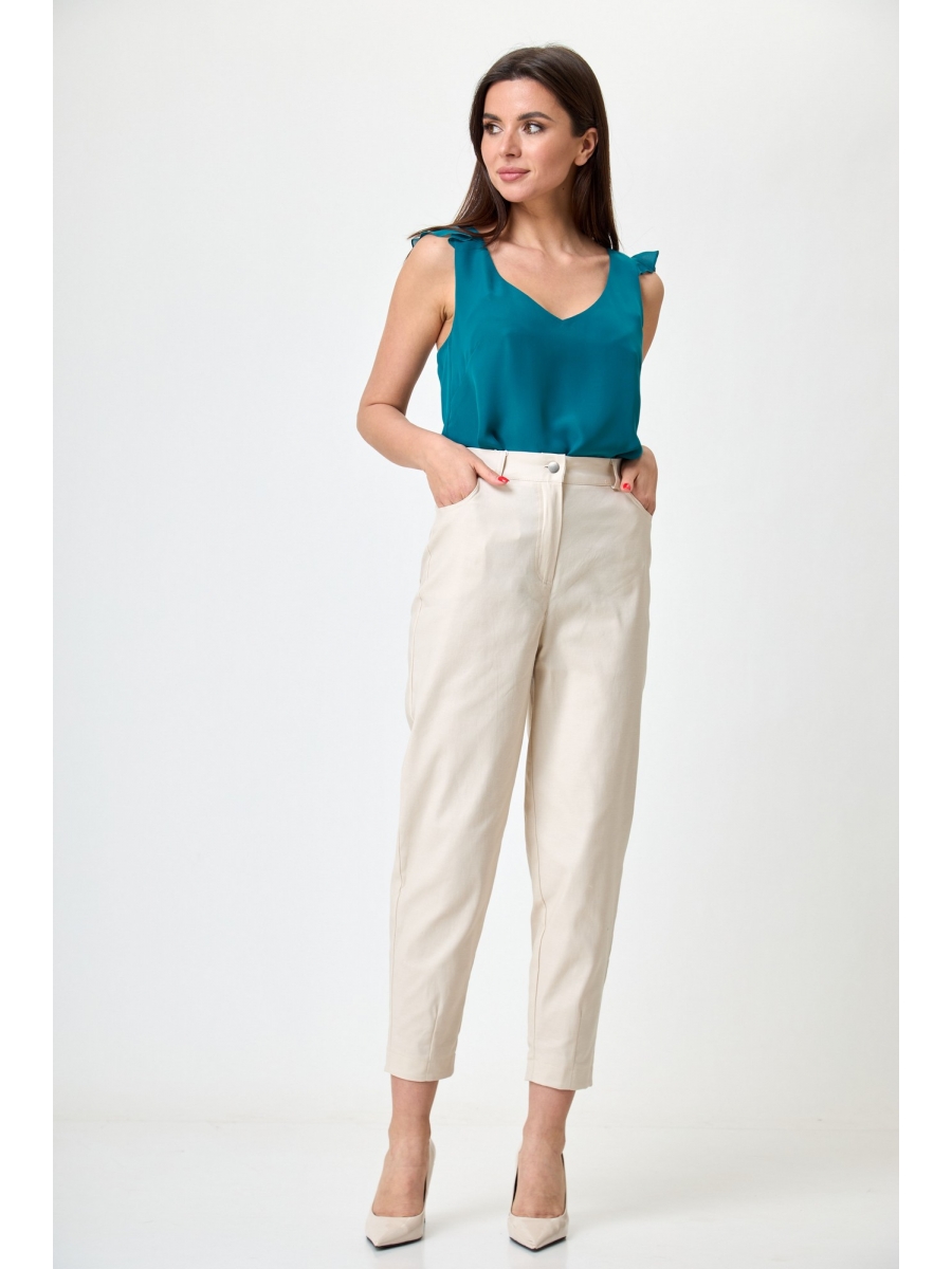 Брюки женские длиной до середины щиколотки, зауженные к низу, с высокой посадкой. По переду карманы, застежка: гульфик на молнии, пояс петля кнопка. По спинке фигурная кокетка и настрочные карманы. Пояс по спинке на резинке, для лучшей посадки. Актуальный силуэт брюк, идеальная посадка, удобство и стиль, они станут хорошей базой для любого образа, который вы захотите создать.