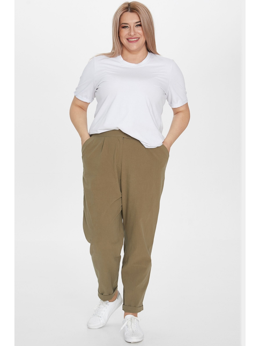 Эффектные брюки чинос свободного силуэта укороченной длины. Выполнены из хлопковой ткани с добавлением эластана. Модель с комфортной высокой посадкой и комбинированным поясом, с застежкой на тесьму-молнию и пуговицу. По переду удобные наклонные карманы с листочкой. Модель составит гармоничный комплект с однотонными и принтованными топами и блузами. Отличный вариант для стильного повседневного гардероба.