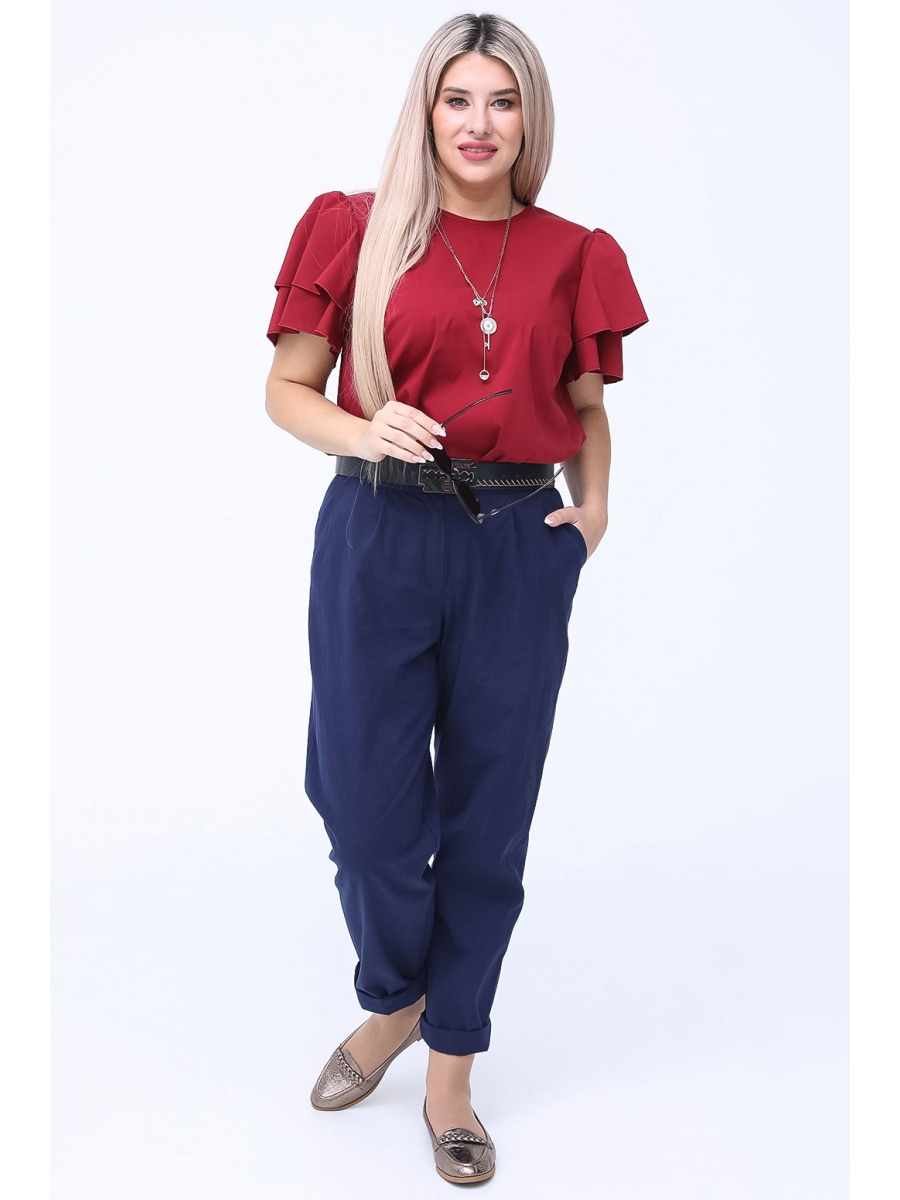 Эффектные брюки чинос, свободного силуэта, с наклонными карманами по бокам и складками по талии. Выполнены из хлопковой ткани. Модель с комфортной высокой посадкой и комбинированным поясом, застежка - гульфик на молнию и пуговицу. Модель составит гармоничный комплект с однотонными и принтованными топами и блузами. Отличный вариант для стильного повседневного гардероба.