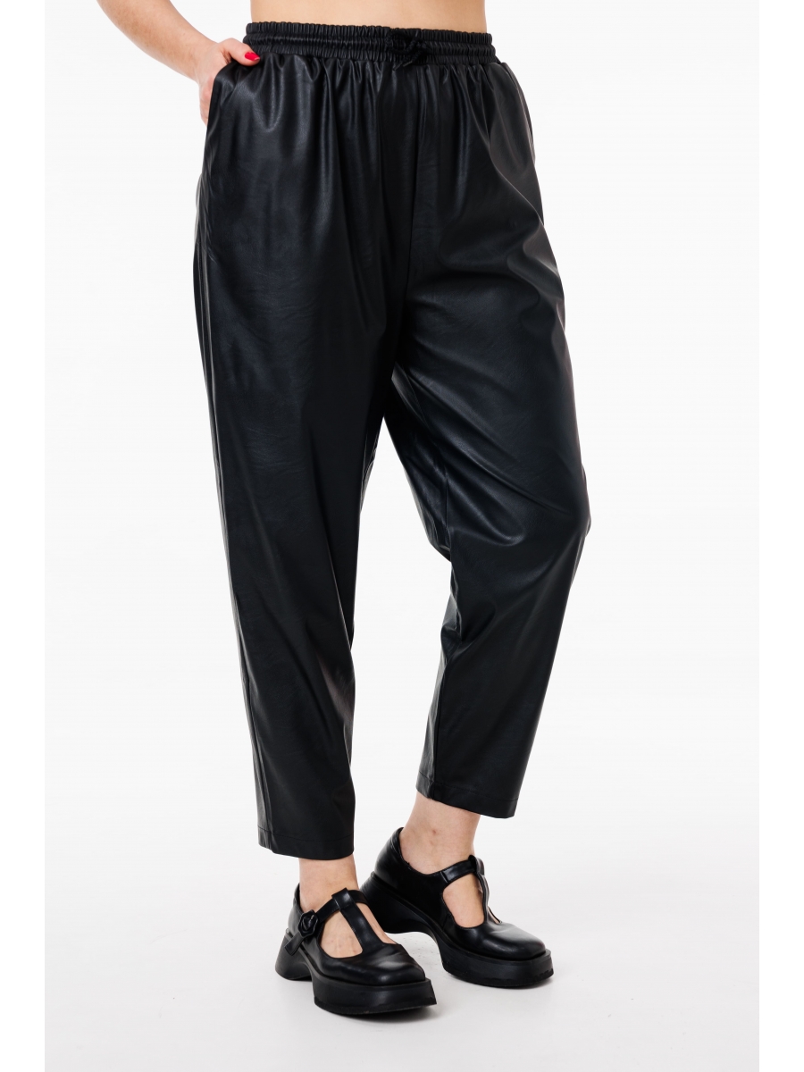Брюки из эко-кожи с зауженным к низу кроем идеально сочетают в себе стиль и комфорт.