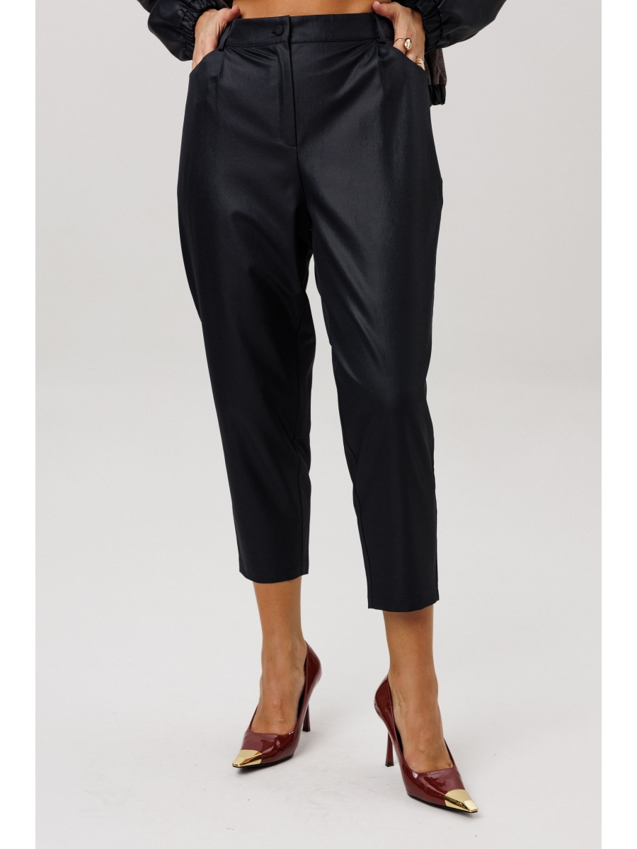 Эти брюки заужены к низу, что позволяет носить их с любым видом обуви. Также, вы можете составить образы с топом 767 и бомбером 1378 как на модели.