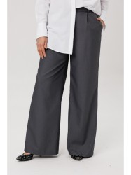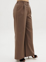 Идеальная посадка достигнута за счет эластичной резинки по спинке, которая мягко облегает фигуру, подчеркивая линию талии и обеспечивая комфорт в течение всего дня. Широкие штанины визуально удлиняют ноги, добавляя образу женственности и грации.