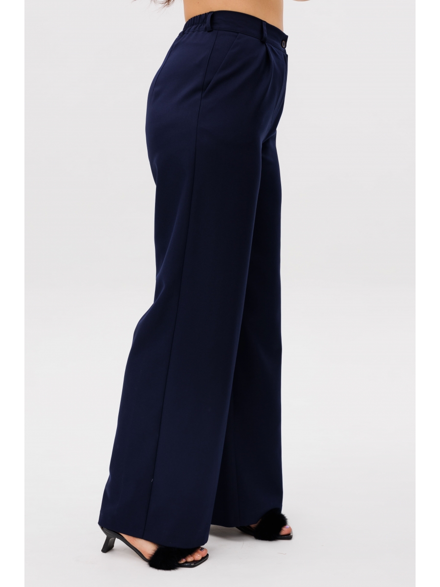 Идеальная посадка достигнута за счет эластичной резинки по спинке, которая мягко облегает фигуру, подчеркивая линию талии и обеспечивая комфорт в течение всего дня. Широкие штанины визуально удлиняют ноги, добавляя образу женственности и грации.