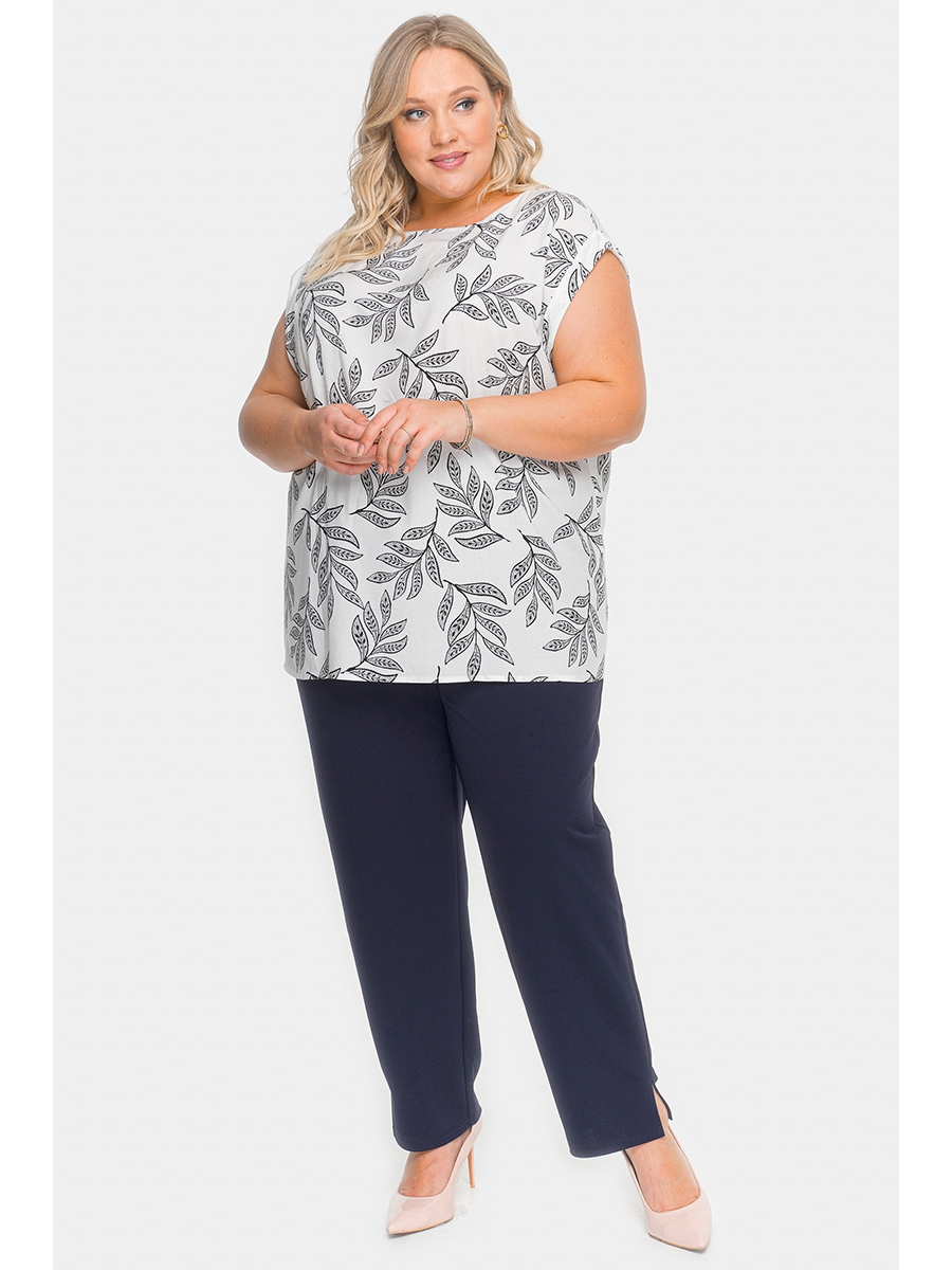 Ткань - креп с эластаном; состав: вискоза - 65%, полиэстер - 25%, эластан - 10%.