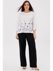 Классические брюки Ma Сhérie из натуральной льняной ткани. Пояс притачной с резинкой по спинке, застежка-гульфик на молнию и петлю с пуговицей. Перед с функциональными карманами с диагональным входом.