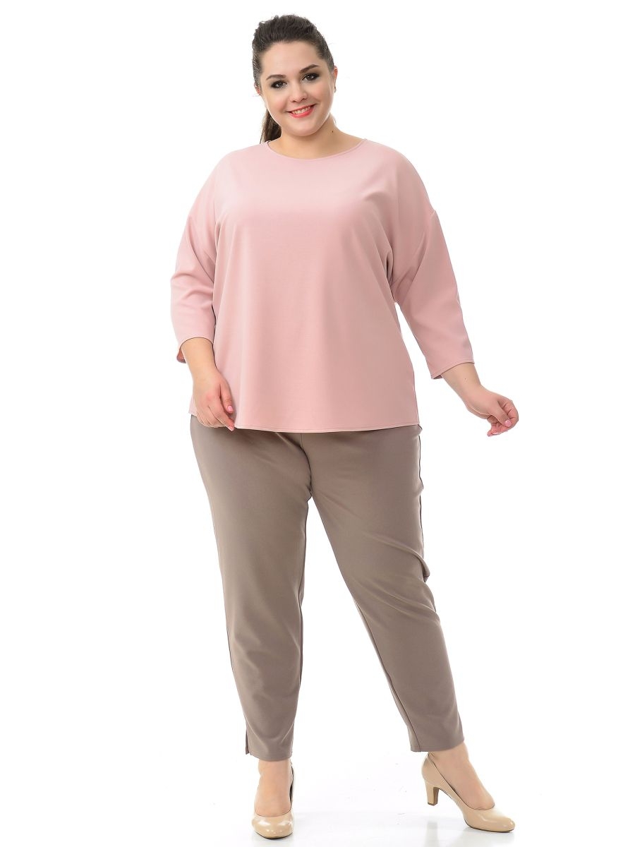 Брюки зауженные из крепа с эластаном, длиной 7/8. Верх на резинке, по низу боковых швов - разрезы.