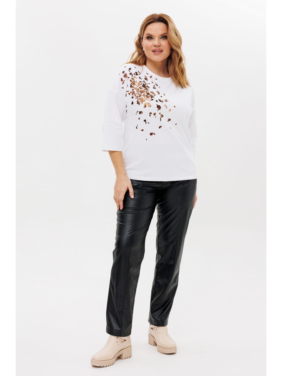 Брюки женские из эко-кожи с карманами. Изнаночная сторона кожи вискозная. По центру передней и задней половинок расположены швы. Верх брюк обработан притачным поясом со шлевками.