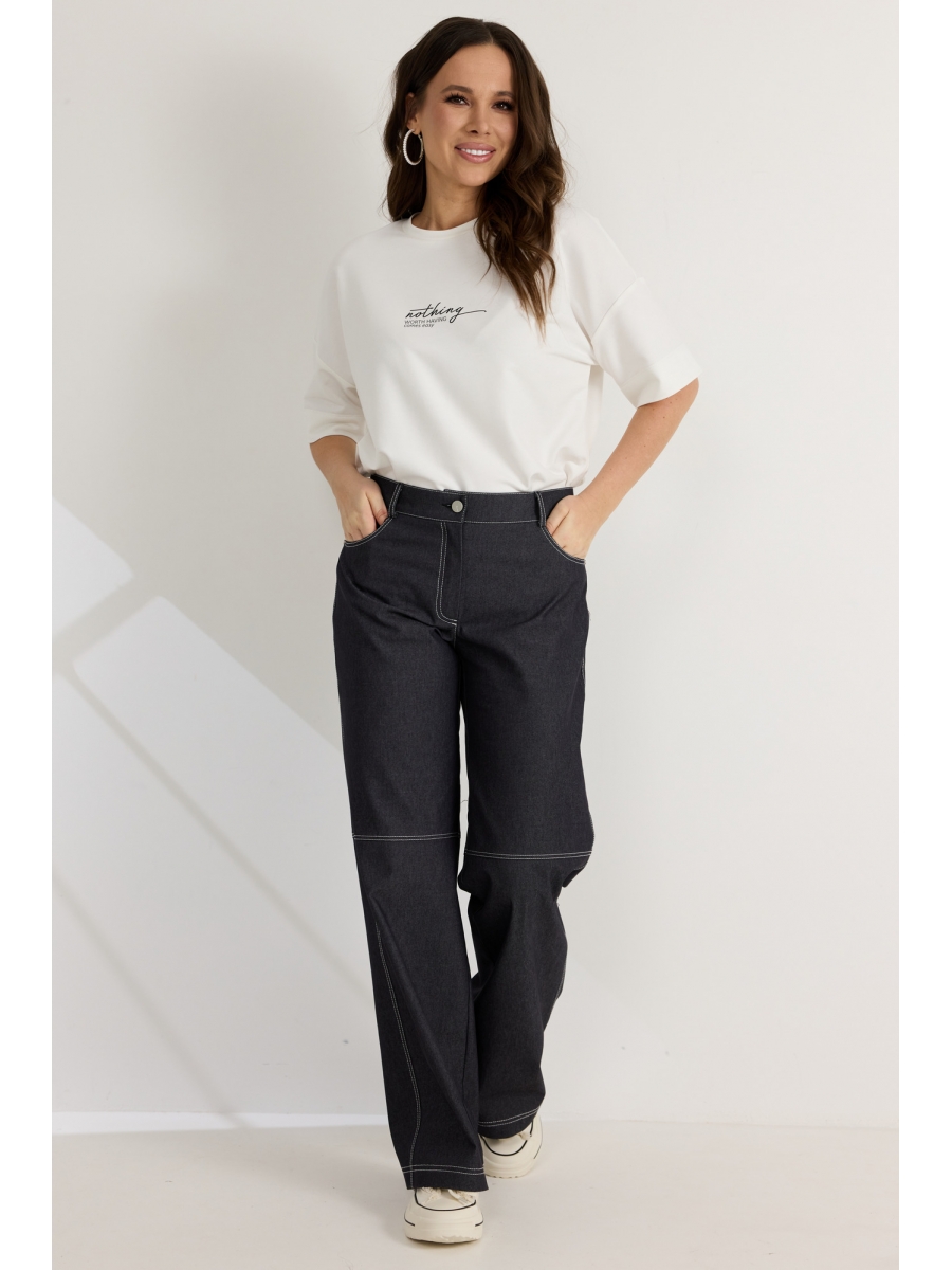 Оформить заказ →Брюки прямого свободного кроя. Выполнены из джинсового полотна средней плотности. Брюки дополнены декоративными строчками вдоль швов, а также металлическими заклепками. Пояс притачной, по спинке дополнен эластичной тесьмой. Спереди застежка гульфик с молнией и пуговицей. Брюки дополнены боковыми карманами, а также накладными карманами сзади.