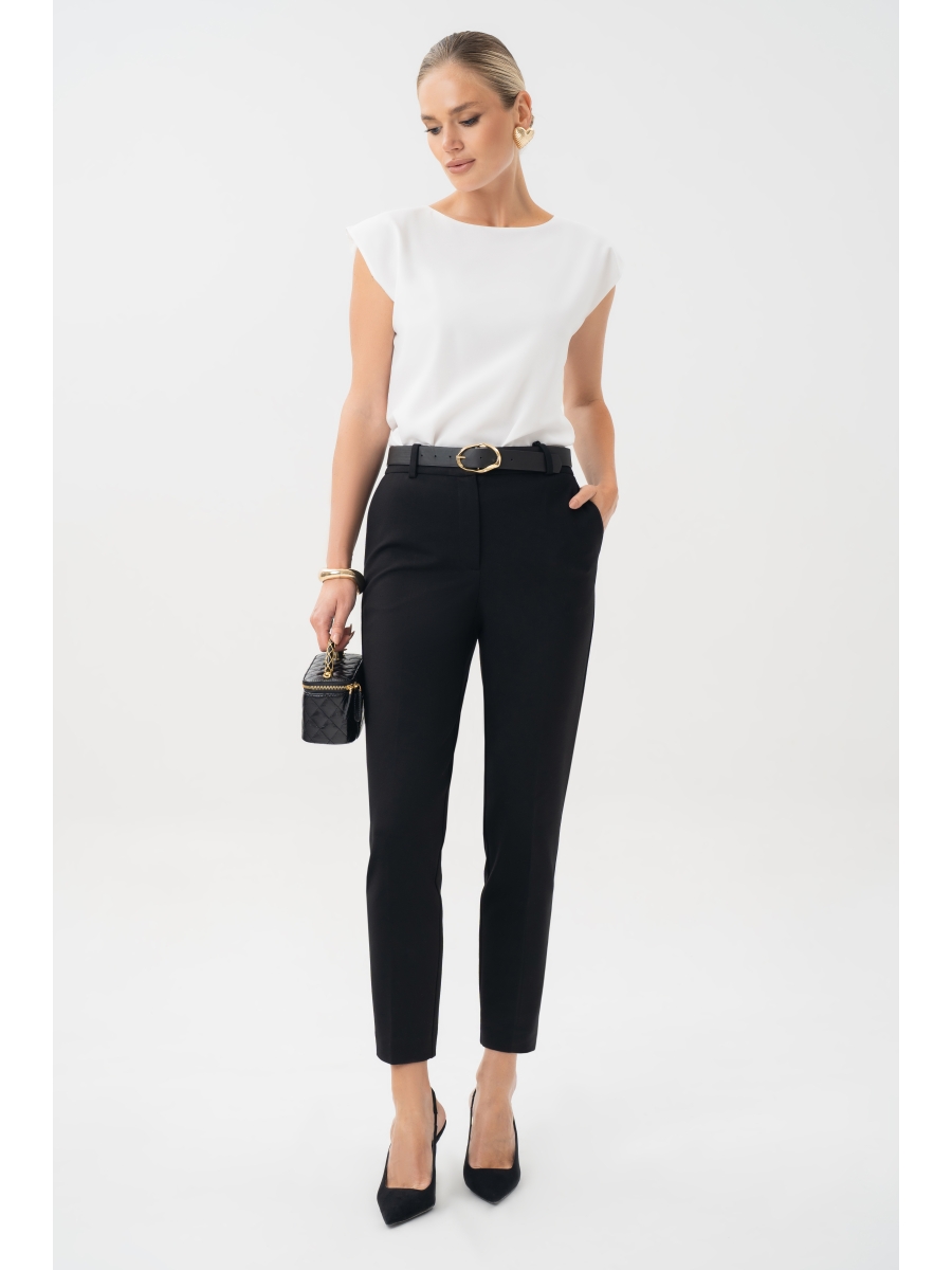 Оформить заказ →Брюки женские классические всегда остаются актуальными вне зависимости от модных тенденций. Брюки прекрасно комбинируется с блузой 24-425-1 и являются комплектом к жакету 25-641-1. Брюки женские, выполнены из трикотажного полотна, зауженные к низу, на обтачном поясе, с 5-ю шлевками, с застежкой на тесьму - «молнию», расположенную в среднем шве передних половинок. Пояс застегивается спереди на пришивной крючок, 1 петлю и потайную пуговицу. Передние половинки брюк с боковыми наклонными карманами, с заутюженными стрелками. Задние половинки с вытачками, с заутюженными стрелками. Левая задняя половинка с функциональным прорезным карманом с листочкой. Брюки предназначены для повседневной носки.