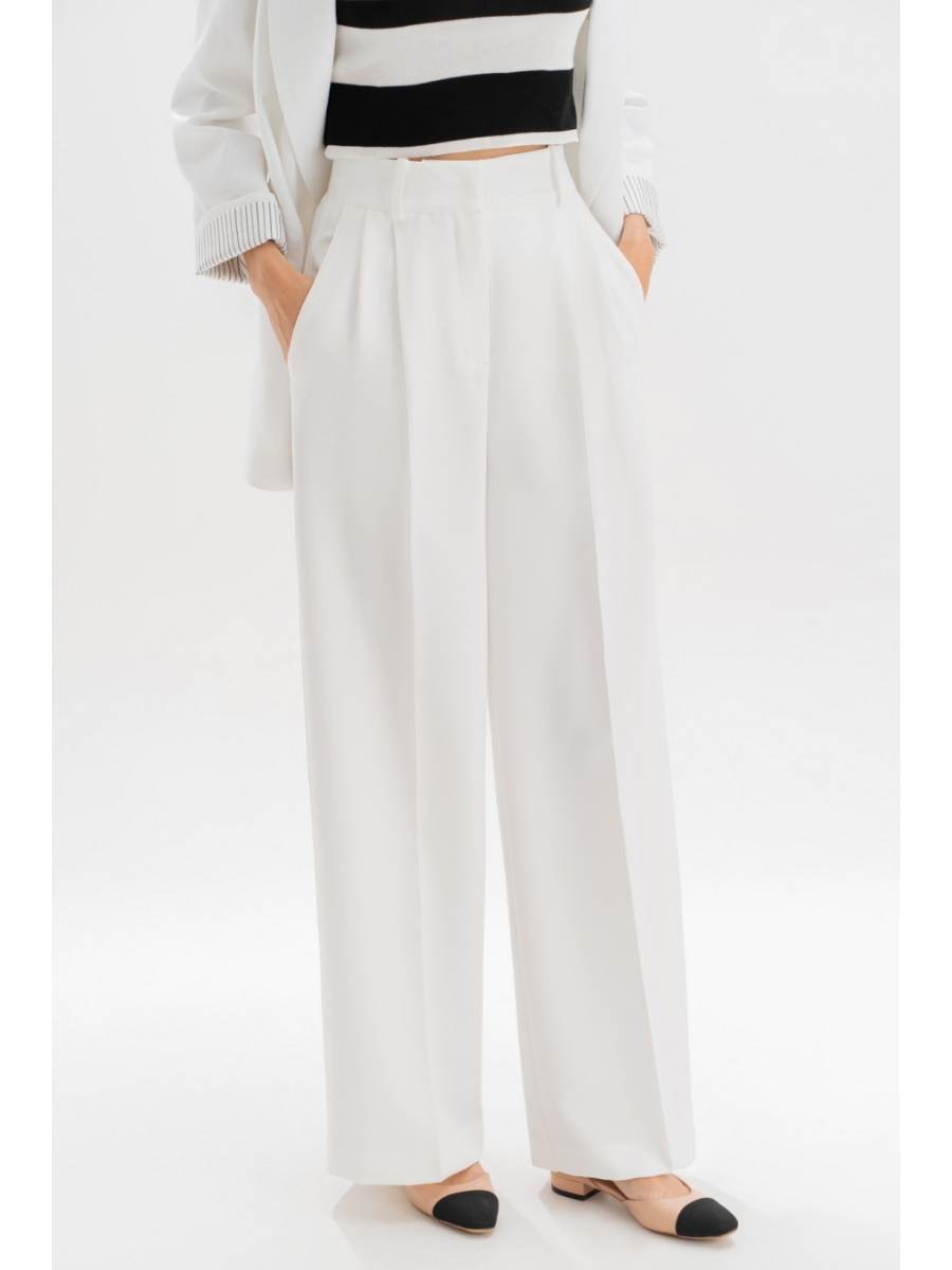 Оформить заказ →Идеальные белые брюки — основа капсульного гардероба. Модель выполнена в прямом крое, визуально вытягивающем силуэт и придающем образу легкость. Аккуратные стрелки, лаконичные складки от пояса и деликатные вытачки формируют безупречную посадку. Пояс с регулируемыми патами обеспечивает комфортную посадку на талии, а универсальный цвет легко сочетается как с базовыми топами, так и с яркими акцентами. Брюки женские, прямые, выполнены из костюмно-плательной ткани ""барби"". Передние и частично задние половинки брюк, с отрезным поясом, задние половинки брюк от вытачки до бокового шва с цельнокроеным поясом, с застёжкой на тесьму - «молнию», расположенную в среднем шве передних половинок, Пояс застегивается спереди на один пришивной крючок и 1 петлю и 1 потайную пуговицу. Для регулировки пояса по талии в боковых швах обработаны паты, застегивающиеся на 1 петлю и 2 пуговицы. Передние половинки брюк с боковыми наклонными карманами, частично застроченными от пояса вниз на 3,0 см, с двумя парами односторонних складок от пояса, с 2-мя шлевками. Задние половинки брюк с талиевыми вытачками. Передние и задние половинки брюк с заутюженными стрелками.