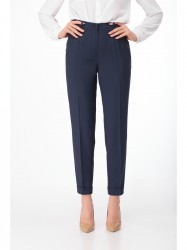 Брюки классического покроя с высокой посадкой, с боковыми карманами, притачным поясом, низ брюк с отворотами.
