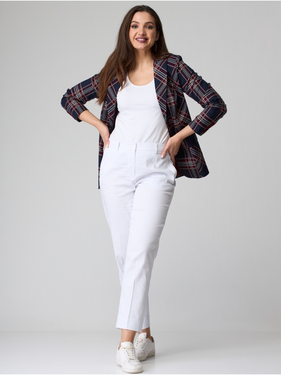 Оформить заказ →Классические брюки, прямые, слегка заужены к низу, заутюжены стрелки, по переду обработаны карманы с отрезным бочком, застежка на тесьму-молнию и 1 пуговицу. На задних половинках обработаны вытачки и имитация карманов в рамку с двумя обтачками, пояс в брюках притачной. По низу брюк в боковом шве есть небольшой разрез.