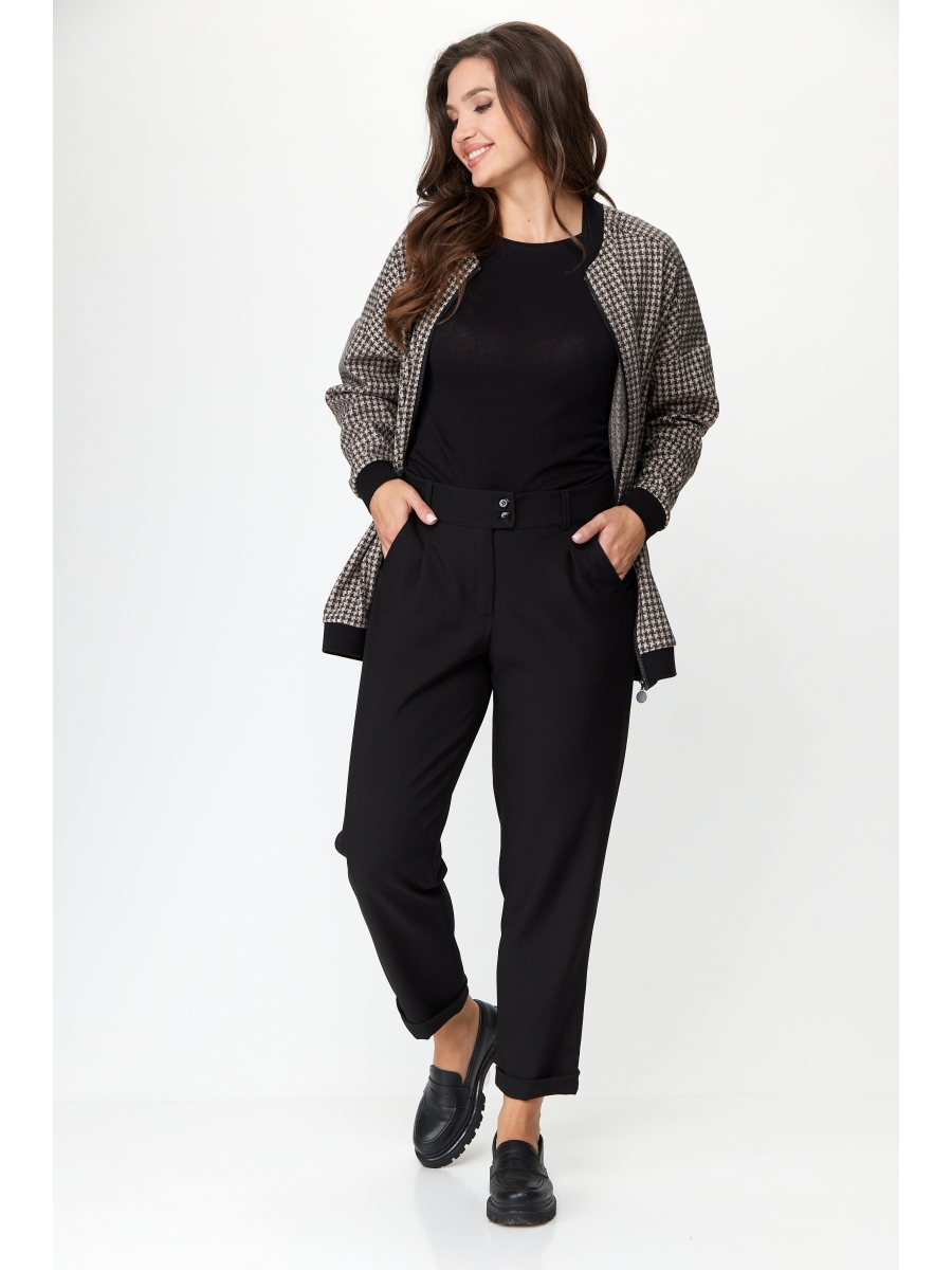 Оформить заказ →Женские брюки, зауженные к низу на широком поясе со шлевками, с застежкоой на молнию и две пуговицы, с карманами, с отворотом по низу брюк.