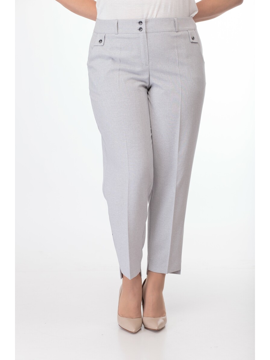 Брюки классические, слегка заужены к низу, с ассиметричным низом, боковые карманы с закруглённым входом и патой; на задних половинках не рабочие карманы с листочкой, пояс-обтачка притачной.