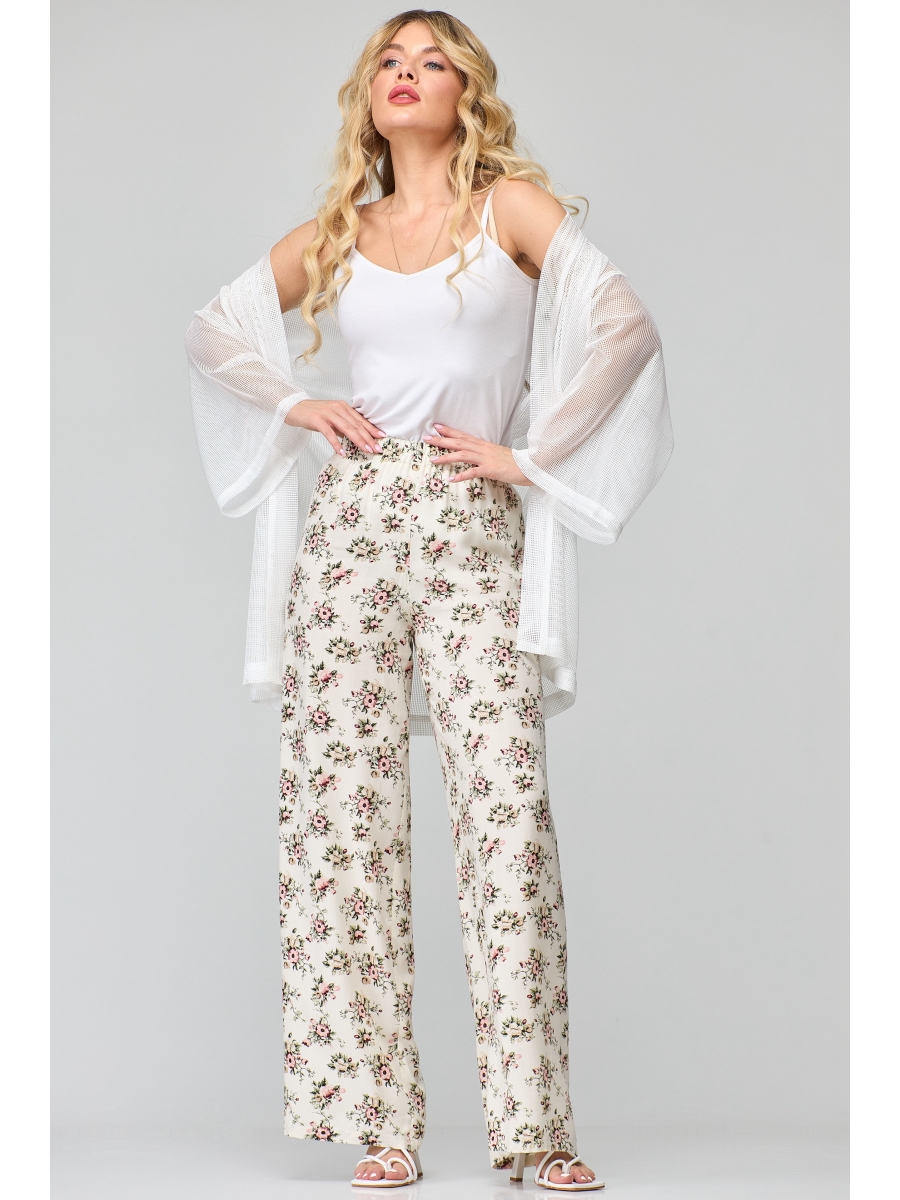 Брюки широкие прямые с высокой посадкой. Пояс брюк на широкой резинке.