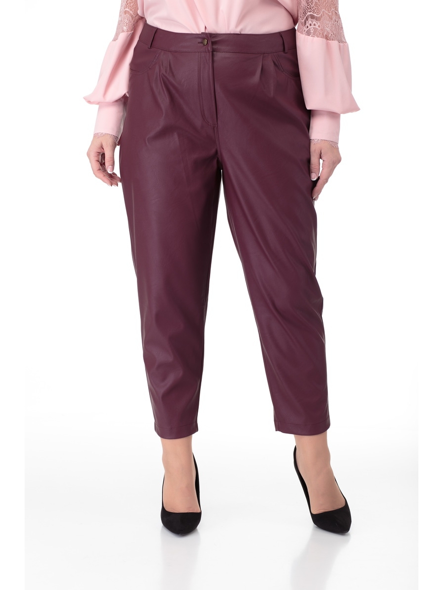 Брюки-слоучи актуального силуэта выполнены из эластичной экокожи.