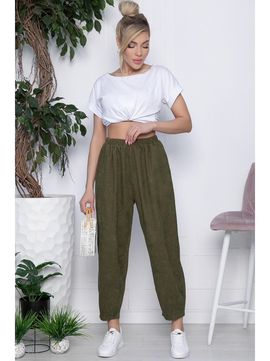 Объёмные брюки в стиле бохо это свободный непринужденный стиль современной моды. Шароварный силуэт создается за счет резинки по талии, свободной посадки в бедрах, бокового защипа по низу и оригинального высокого манжета в виде тюльпана. Свободные, прямые, просторные брюки бананы выгодно подчеркивают женские формы и скрывают недостатки. Комбинируйте их с различными видами топов, джемперов, блузок или футболок. Брюки выполнены из комфортной в носке ткани, которая не вытягивается и не деформируется после стирки.