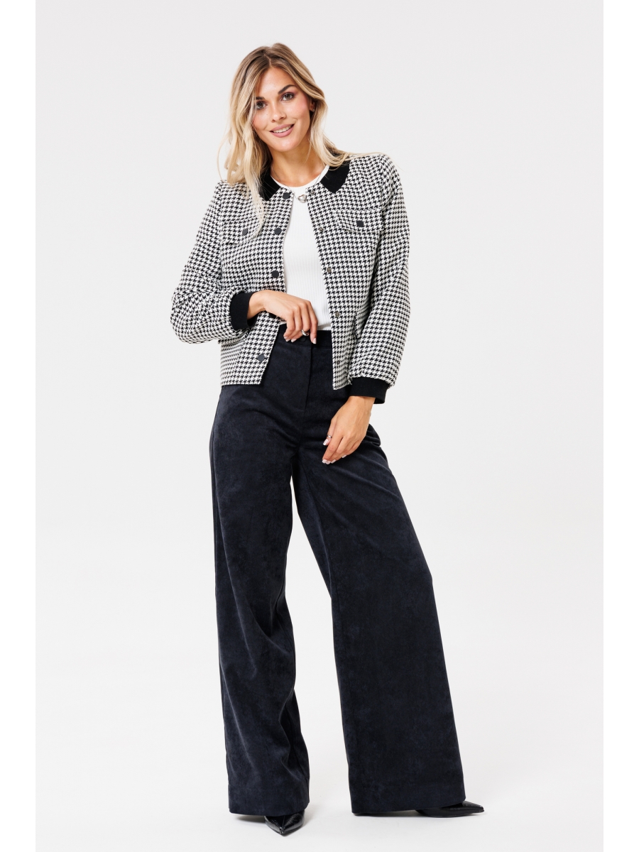 Брюки женские прямые из текстильной ткани (вельвет-штрукс). В боковых швах расположены подрезные карманы. По задним половинкам расположены таллиевые вытачки. Верх брюк обработан притачным поясом со шлевками.
