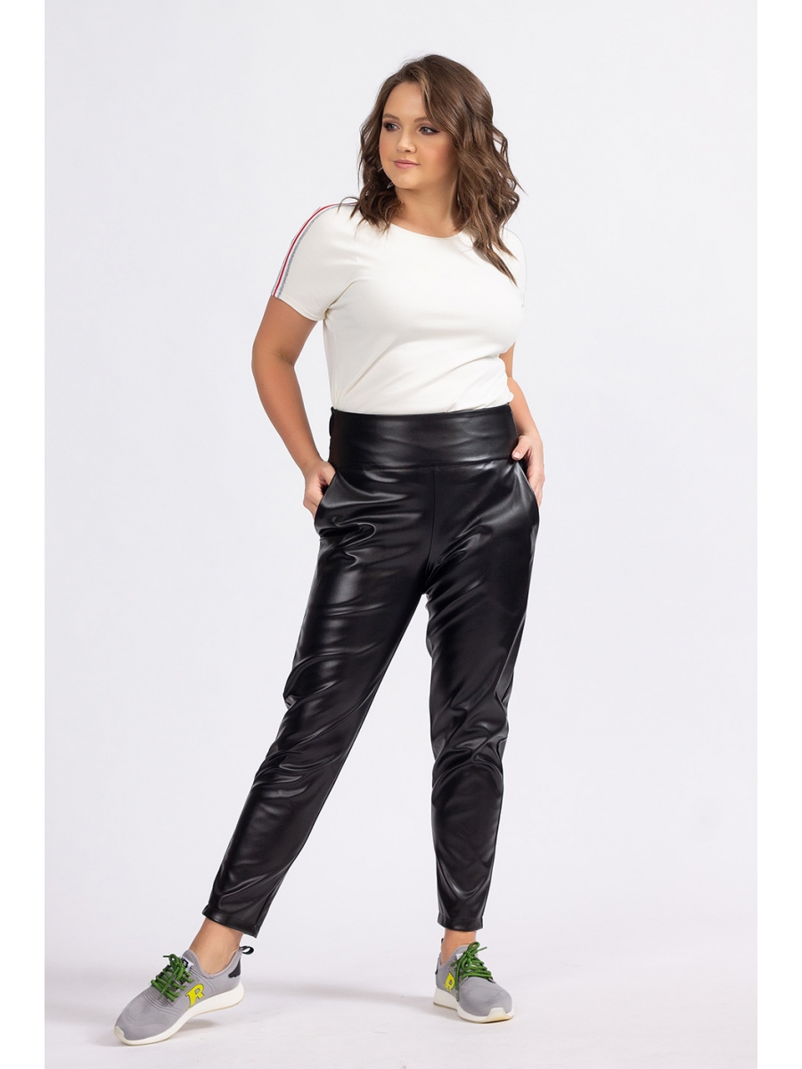 Оформить заказ →Ткань: экокожа. Брюки спереди – пояс-кокетка, сзади – на резине, в боковых швах – косые карманы, книзу заужены.