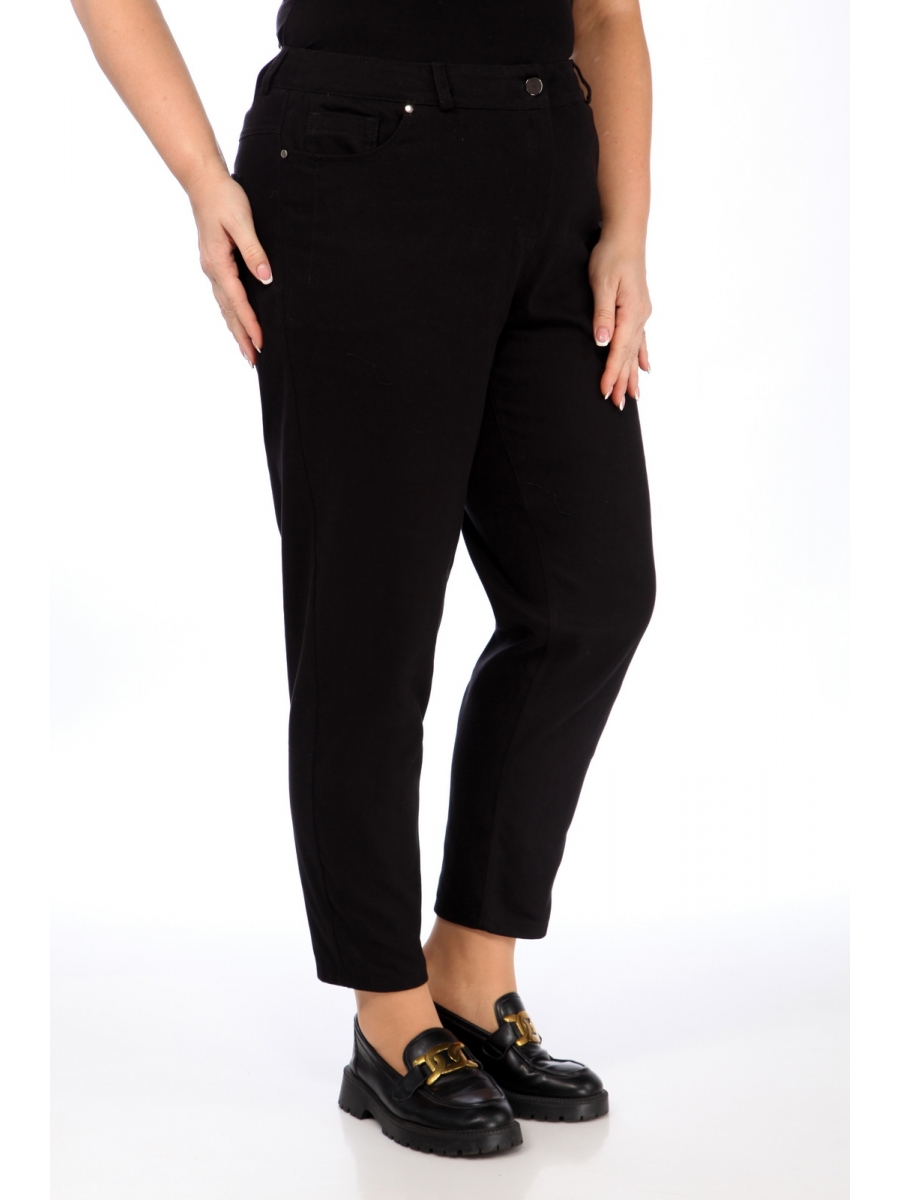 Джинсы Mom Fit изготовлены из плотной джинсовой ткани, средней посадки. По передним деталям обработаны карманы с подрезным бочком, от которых идут отделочные вытачки. Задние детали с кокетками и накладными карманами. Пояс обтачной, застежка на молнию и пробивную металлическую пуговицу.