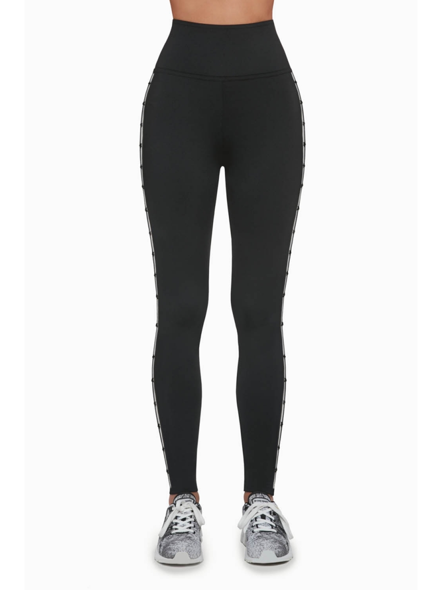Леггинсы для фитнеса черного цвета Stars с высокой посадкой, по бокам лампасы. Леггинсы изготовлены из полностью непрозрачного, эластичного, корректирующего фигуру материала. Благодаря применению особой химической модификации структуры волокон фирмы ARCHROMA, материал имеет улучшенные свойства пропускания воздуха и отвода влаги с тела.