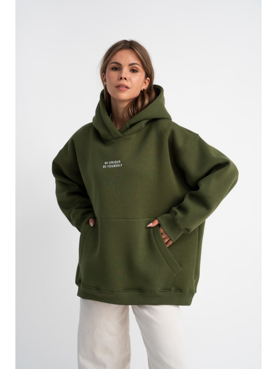 Утеплённый Худи изготовлен из качественного турецкого трикотажа. Ткань тёплая и приятная на ощупь, не пилингуется, с изнанки на флисе. Толстовка со спущенной линией плеча, свободного силуэта, с двойным капюшоном, по переду карман по типу “кенгуру”. Крой oversize позволяет чувствовать себя в нем очень комфортно и стильно! Вышивка спереди “Be unique Be yourself” (будь уникальным, будь самим собой) выделяет его среди других и выполнена с особой тщательностью.