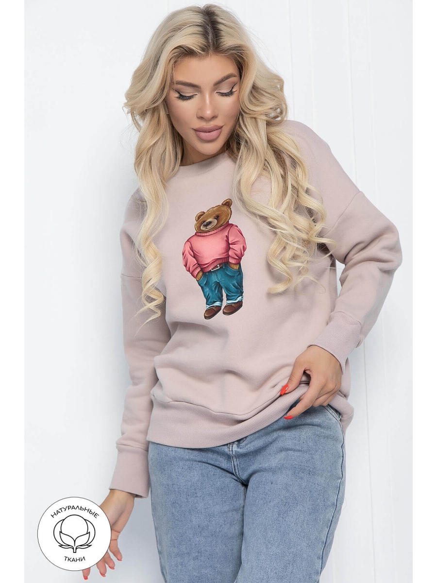 Невероятно мягкий и уютный базовый свитшот с милым принтом спереди создан для комфортных повседневных образов. Такой вариант отлично будет сочетаться с джинсами и лосинами. Имеет комфортный длинный рукав со спущенным плечевым швом. Крой свободный, на рукавах и по низу изделия широкий манжет.
