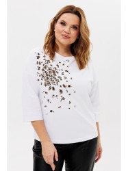 Джемпер женский из трикотажной ткани. По переду расположен принт ""Змея"". Спущенное плечо, рукав 3/4. Вырез горловины круглый, оформлен притачной бейкой.