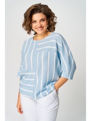 Джемпер женский из трикотажной вязаной ткани в полоску, свободного силуэта (летучая мышь). Перед и спинка джемпера обработаны декоративными подрезами. Рукав цельнокроеный. Вырез горловины круглый, обработан бейкой.