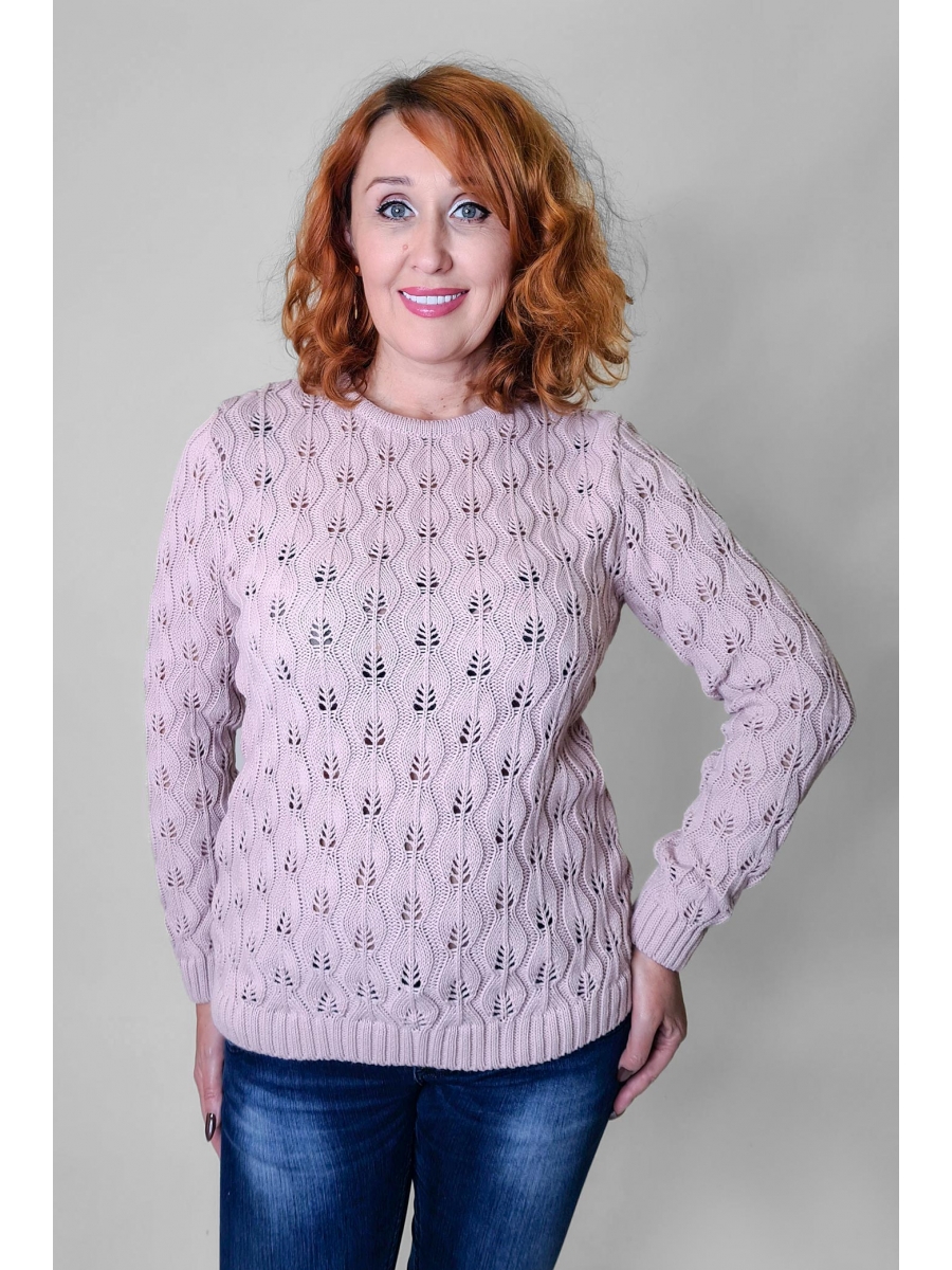 Полушерстяной джемпер с круглой горловиной. Рукава втачные длинные с эластичной манжетой. Ажурная вязка