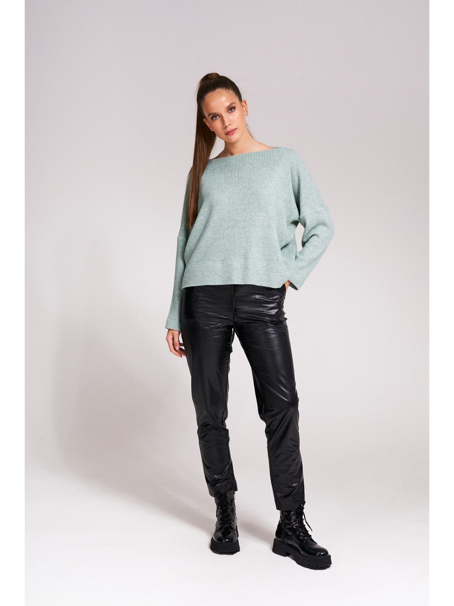 Оформить заказ →Джемпер-оверсайз из трикотажного полотна. Горловина открывает немного зону плеч. Рукав длинный цельнокроенный. Низ изделия и рукава на широкой подгибке.
