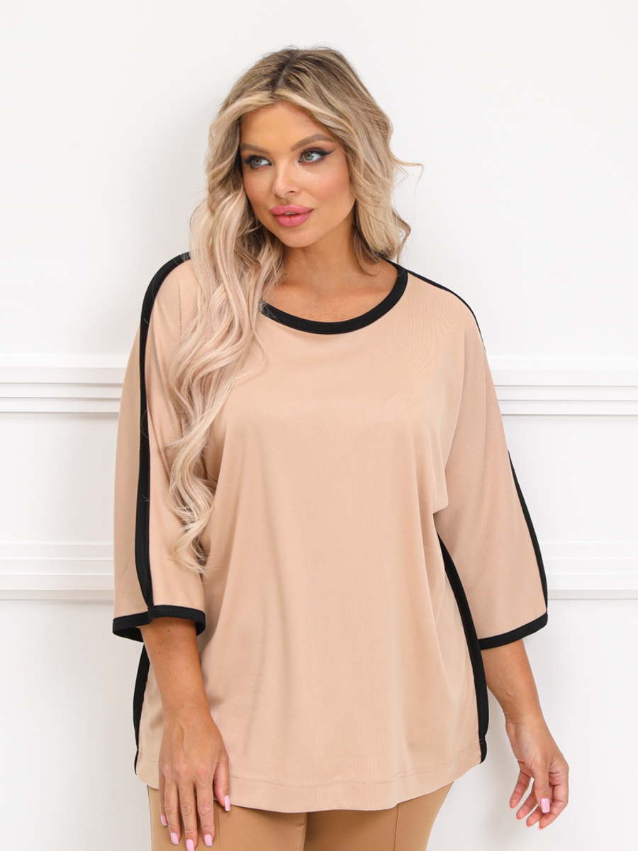 Оформить заказ →Уютный джемпер прямого силуэта из трикотажного полотна бежевого цвета. Джемпер дополнен контрастными окантовками. Круглый вырез изделия обработан окантовкой. Джемпер с цельнокроеными рукавами. Длина изделия по спинке от плечевого шва до низа изделия — см. Рост фотомодели — 170 см.