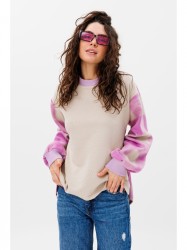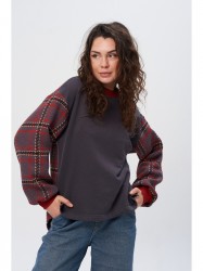 Стильный женский джемпер из качественного футера 3-х нитка и ткани компаньона в крупную клетку (по верху с небольшим ворсом). Джемпер свободного прилегания, плечо приспущено, рукав расширенный, собран на манжету, переход на рукав выполнен из ткани компаньона. По переду украшен съемной брошью. Спинка прямая удлиненная, по бокам небольшие разрезы. Манжеты и горловина из кашкорсе. Джемпер можно с легкостью комбинировать с различными вещами и обувью Вашего гардероба.