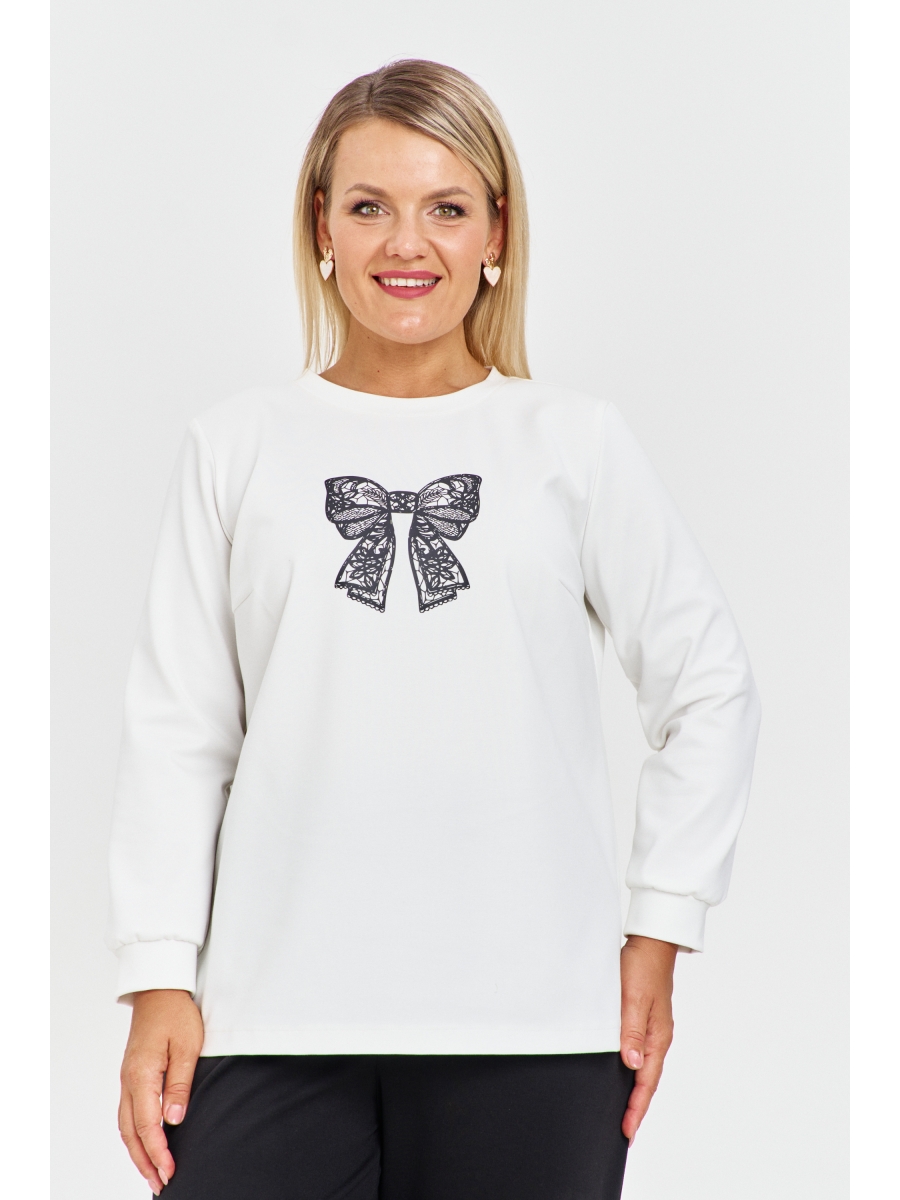 Невероятно комфортный, трикотажный джемпер свободного покроя с круглой горловиной. Рукав втачной, и полномерный по обхвату, на манжете. Для удобства в боковых швах разрезы. На полочке авторская печать «Кружевной бант».