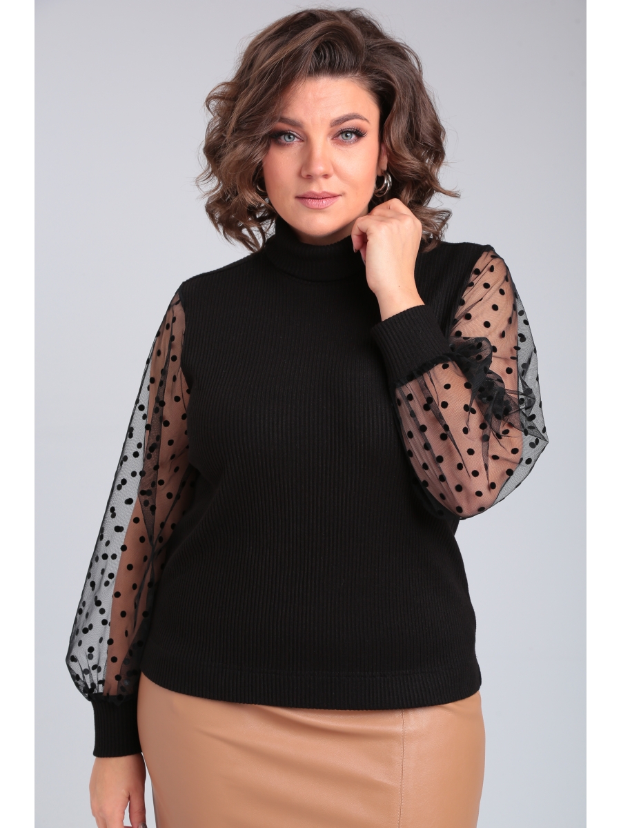 Джемпер прилегающего силуэта с горловиной стойкой. Рукав втачной из декоративной ткани собранный на манжету.